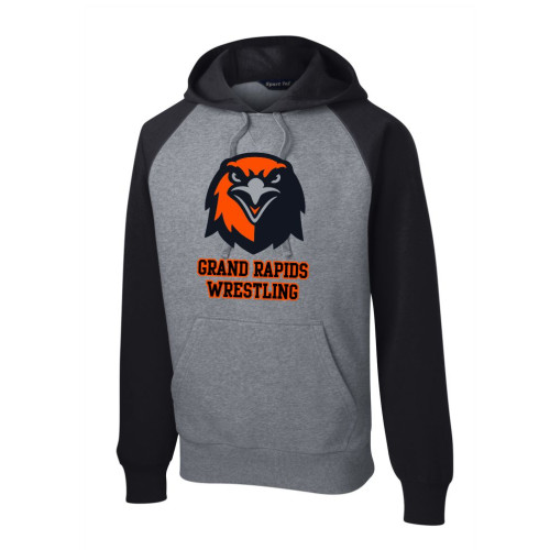 Grand Rapids Wrestling Black/Vintage Heather Raglan Colorblock Pullover Hooded Sweatshirt
